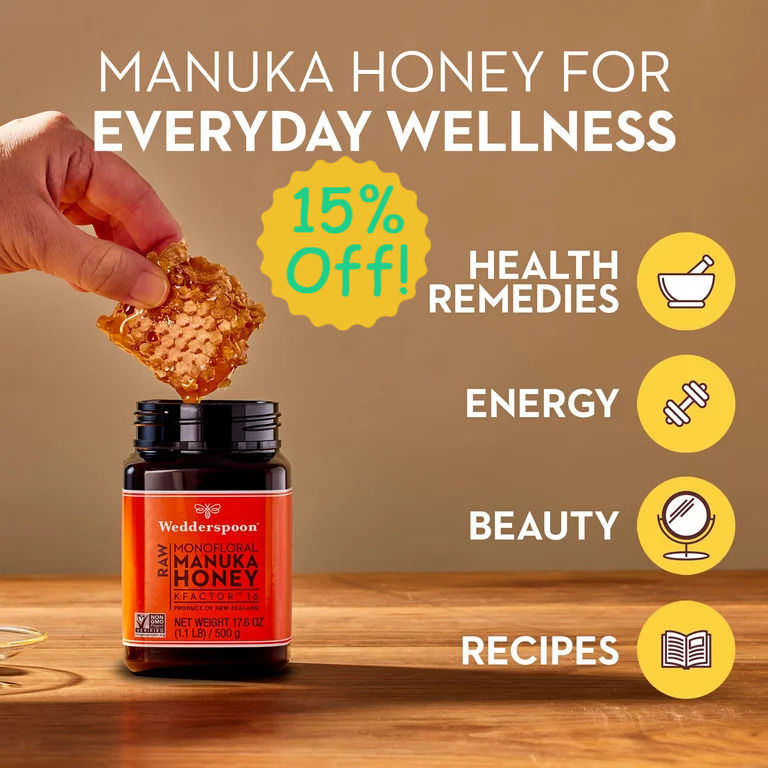 Get 15% off your order at Wedderspoon for quality Manuka Honey from New Zealand.